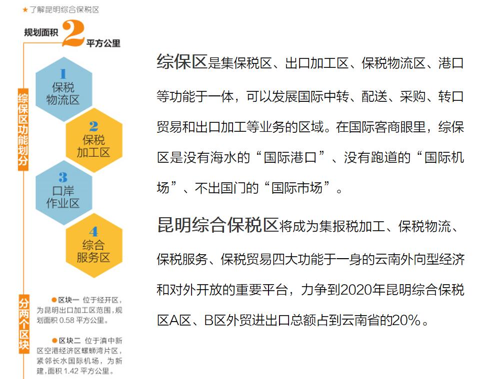 昆明將利用綜合保稅區(qū)這一特有的功能政策優(yōu)勢(shì),積極與世界“對(duì)話”,積極聯(lián)通國(guó)內(nèi)國(guó)外“兩個(gè)市場(chǎng)”和“兩種資源”,集聚各類高端生產(chǎn)要素,把昆明打造成為面向西南開放的區(qū)域性國(guó)際貿(mào)易中心、物流樞紐中心、金融中心、信息中心、總部聚集中心、旅游文化中心和開放平臺(tái),進(jìn)一步增強(qiáng)昆明面向南亞?wèn)|南亞的影響力、輻射力、帶動(dòng)力。