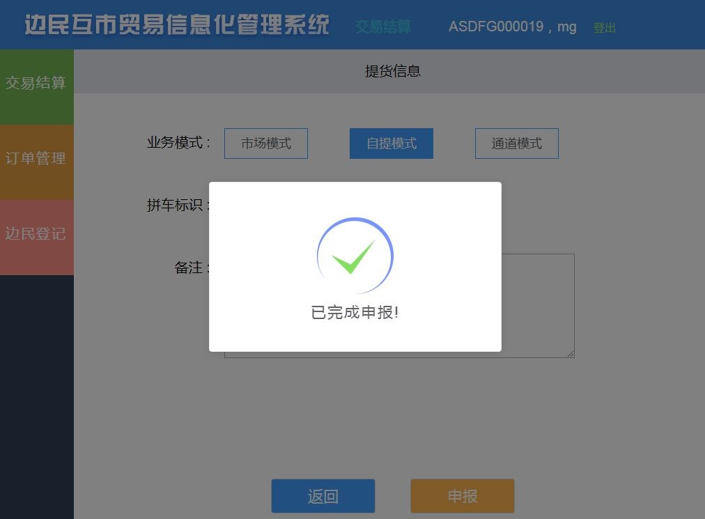 海關總署監(jiān)管司、科技司于2019年5月28日正式開始推行總署互市統(tǒng)一版系統(tǒng)的試運行工作,航通反應迅速,第一時間在滿洲里中俄邊民互市貿易區(qū)上線了航通運營管理平臺,并依照海關總署的聯(lián)調測試要求,成為業(yè)內首家完成聯(lián)調測試且唯一實現(xiàn)與總署互市統(tǒng)一版系統(tǒng)成功對接的企業(yè)。