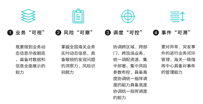 金關(guān)二期海關(guān)總署全景業(yè)務(wù)監(jiān)測(cè)與展示系統(tǒng),從關(guān)區(qū)一張圖引領(lǐng),從一帶一路、陸海新通道、東盟/歐盟進(jìn)出口貿(mào)易、業(yè)務(wù)態(tài)勢(shì)、監(jiān)管通關(guān)、邊小貿(mào)易、互市貿(mào)易、加工貿(mào)易、通關(guān)流程、預(yù)警處置流程等方面展開,再逐步深入綜合業(yè)務(wù)、動(dòng)植食、商品檢驗(yàn)、統(tǒng)計(jì)分析、督審、監(jiān)察室、口岸監(jiān)管、稅收征管、企業(yè)管理和稽查、衛(wèi)生檢疫、風(fēng)險(xiǎn)防控等11個(gè)業(yè)務(wù)板塊分別展開。